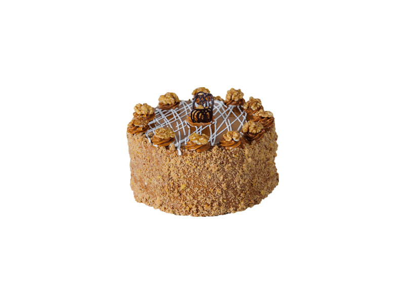 Crocante de nuez, manjar. Cubierta con manjar y crocante de nuez.