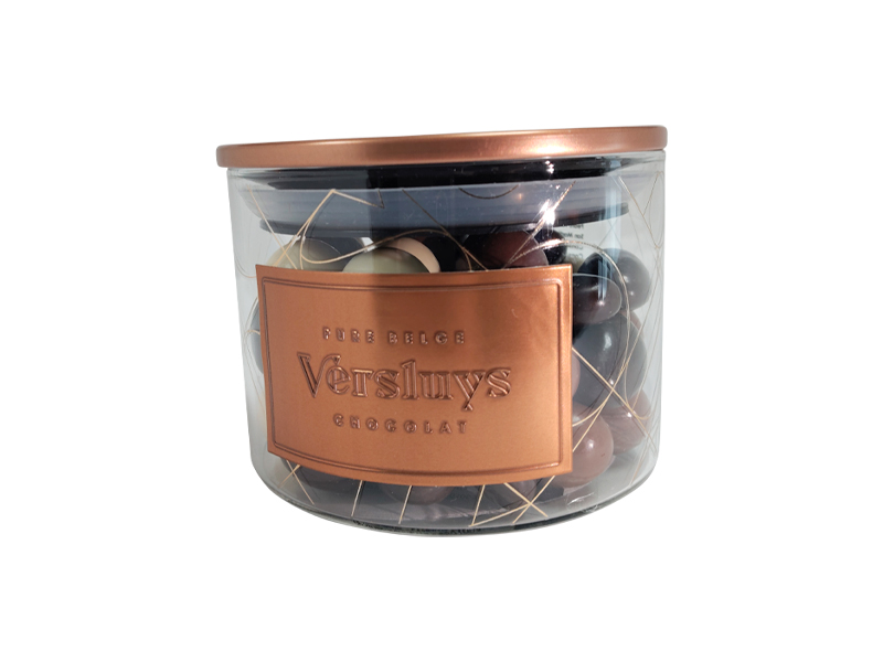Grageado de avellana y almendra en sabor bitter, leche y blanco sin azúcar añadida.