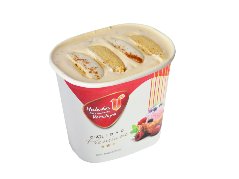 Helado de leche y crema sabor moka, galletas y trocitos de chocolate semi amargo.