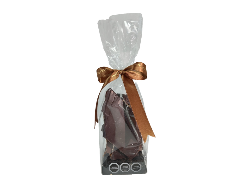 Tabletón de almendra y caramelo bañado en chocolate de leche y bitter.