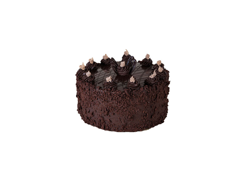 Bizcocho fino de chocolate, ganache de chocolate. Cubierta con ganache y viruta de chocolate.