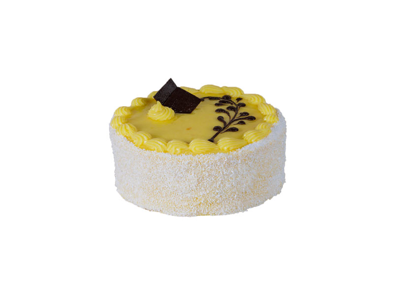 Panqueque blanco, mezcla de crema pastelera con mermelada de naranja. Cubierta en crema naranja y coco rallado.